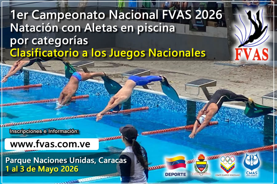 La Federación Venezolana de Actividades Subacuáticas (FVAS), convoca al 1ER CAMPEONATO NACIONAL DE NATACIÓN CON ALETAS EN PISCINA 2026 clasificatorio a los JUEGOS NACIONALES JUVENILES