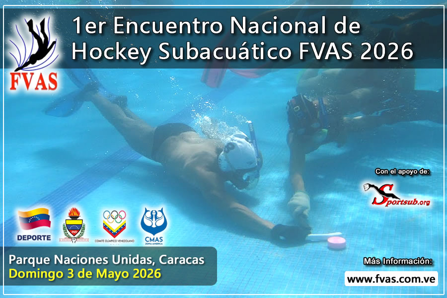 La Federación Venezolana de Actividades Subacuáticas (FVAS) convoca al 1ER ENCUENTRO NACIONAL DE HOCKEY SUBACUÁTICO 2026 el día domingo 3 de mayo en la Piscina Goyo Tavío del Parque Naciones unidas ubicada en El Paraíso, Caracas. El encuentro incluye una clínica teórico-práctica, entrenamiento y un partido amistoso de exhibición, con la participación de atletas, entrenadores y jueces de actividades subacuáticas que deseen conocer e iniciar el desarrollo de esta disciplina en el país.