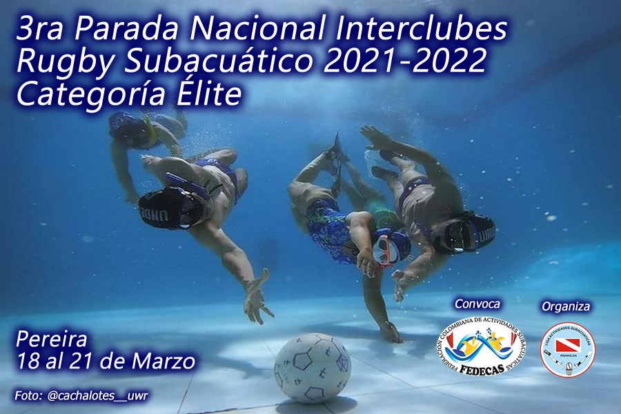 La Federación Colombiana de Actividades Subacuáticas – (FEDECAS), convocó a las ligas del país para que sus Clubes afiliados participaran en la “III Parada Nacional Interclubes de Rugby Subacuático Categoría Élite”, realizada en la ciudad de Pereira – Risaralda, del 18 al 21 de marzo de 2022.