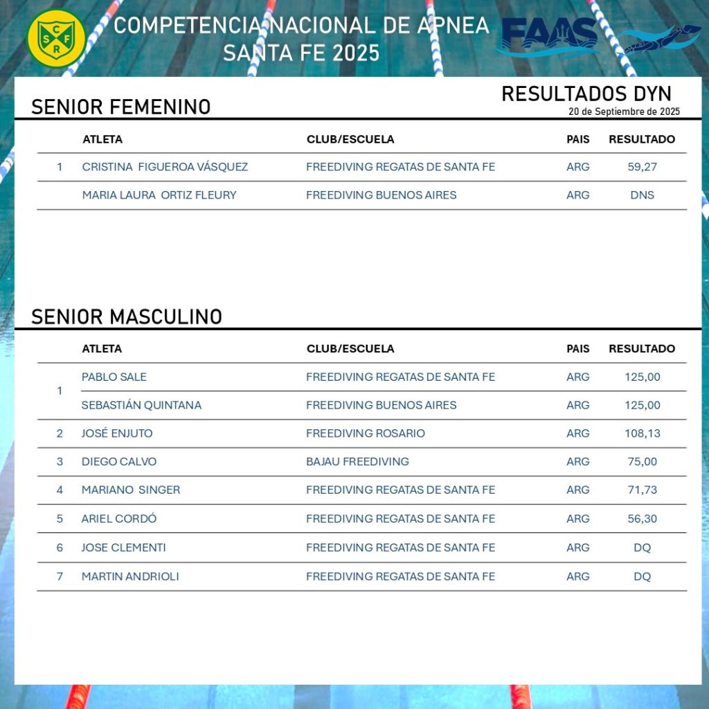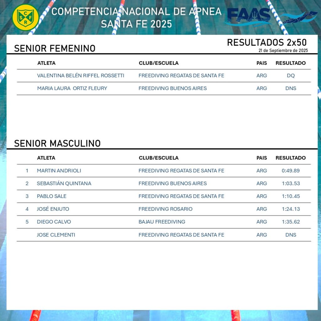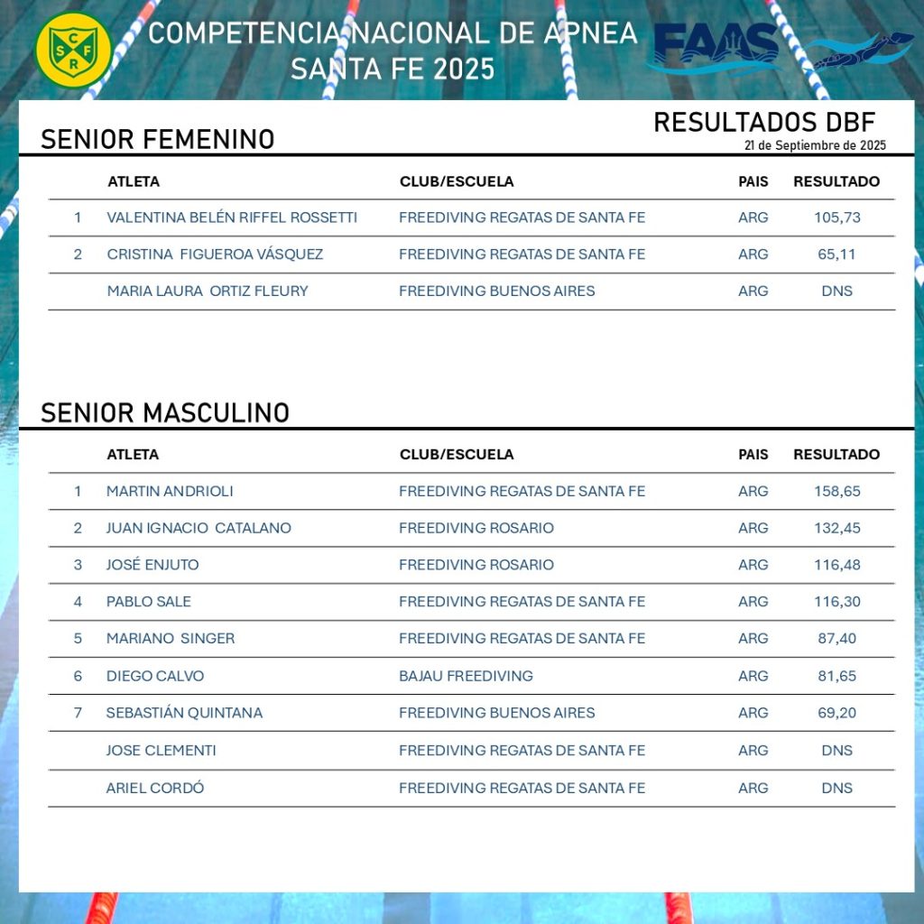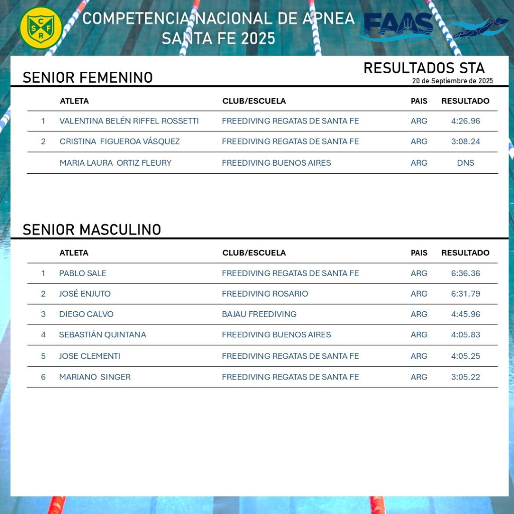 🇦🇷 Resultados – 4ta Competencia 2025 de Apnea Indoor FAAS – Santa Fé, Argentina