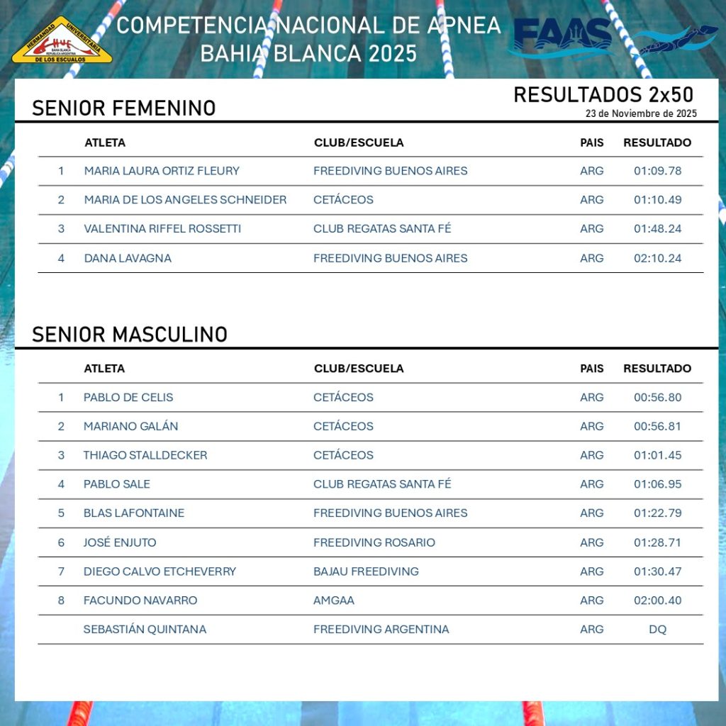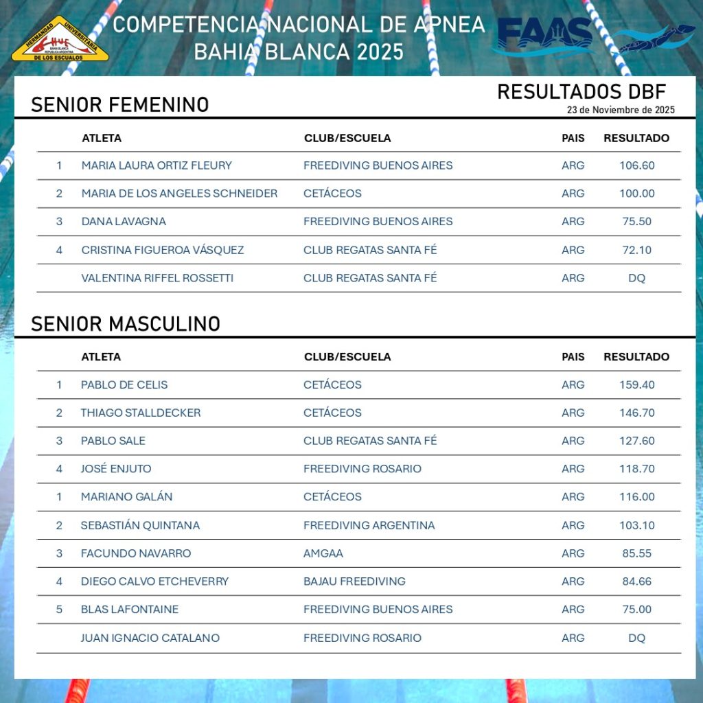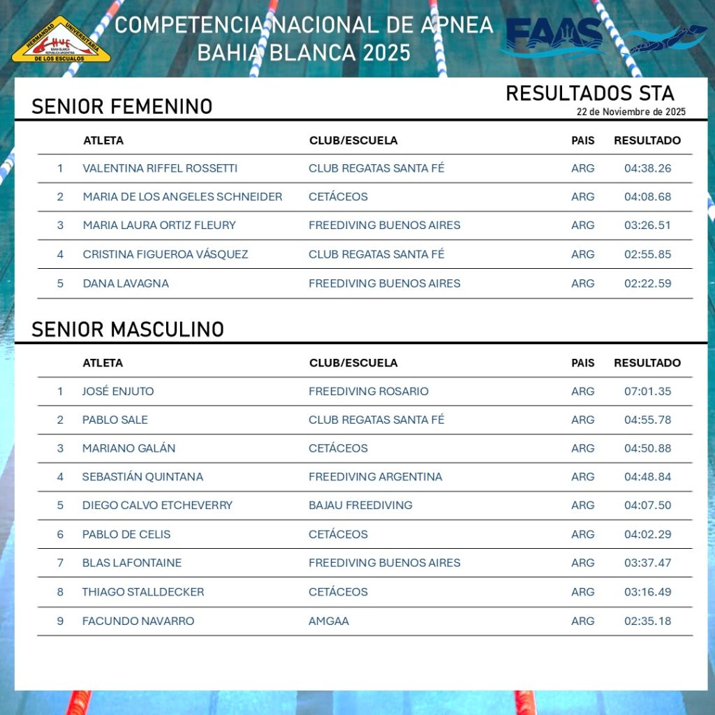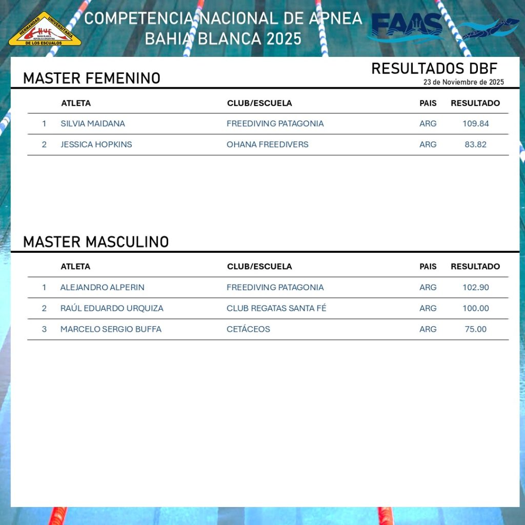 🇦🇷 Resultados – 5ta Competencia 2025 de Apnea Indoor FAAS – Bahía Blanca, Argentina