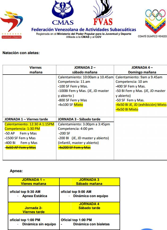 🇻🇪 Resultados – Campeonato Nacional de Actividades Subacuáticas Apnea y Natación con Aletas FVAS Venezuela 2017