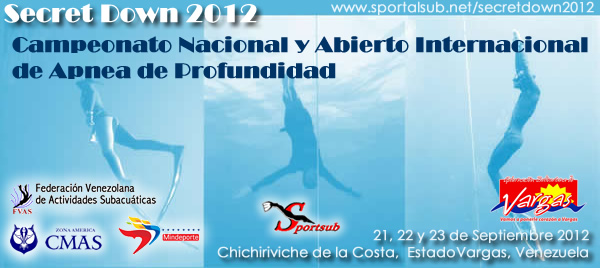 Por segundo año consecutivo, Sportsub & Sportalsub.net anuncia la realización del evento «Secret Down», el cual será Campeonato Nacional FVAS y Abierto Internacional de Apnea de Profundidad, con invitación especial a los deportistas de los países de la CMAS Zona América.