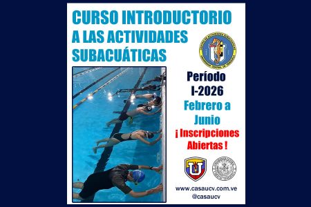 (Sportalsub.net / CASA-UCV) El Centro de Actividades Subacuáticas de la Universidad Central de Venezuela (CASA-UCV) abre las inscripciones para su Primer Curso Introductorio 2026. Cronograma Charla informativa: Martes 3 de Febrero Chequeo de Natación: Miércoles 4 de Febrero Formalización de inscripciones: Miércoles 11 y Viernes 13 de febrero (Todas estas actividades se realizarán en el Complejo de piscinas UCV, a […]