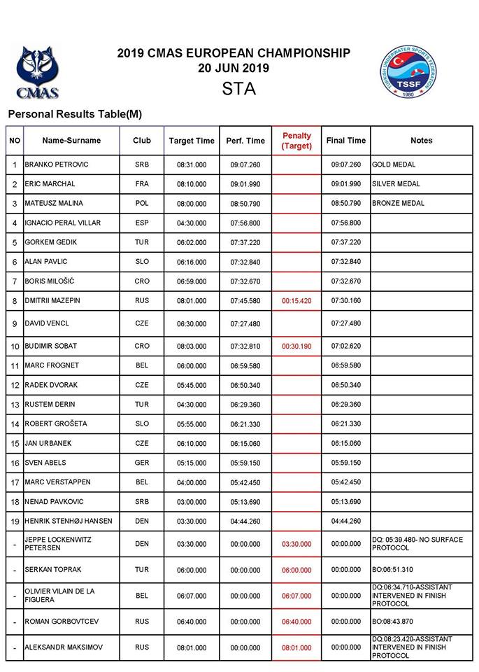 🇹🇷 Resultados – 6to Campeonato Europeo CMAS de Apnea Indoor – Estambul, Turquía 2019