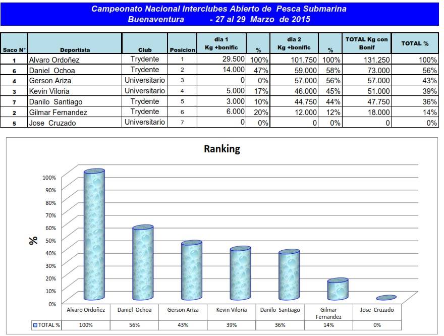🇨🇴 Resultados del Campeonato Nacional Interclubes de Pesca Submarina. Colombia 2015