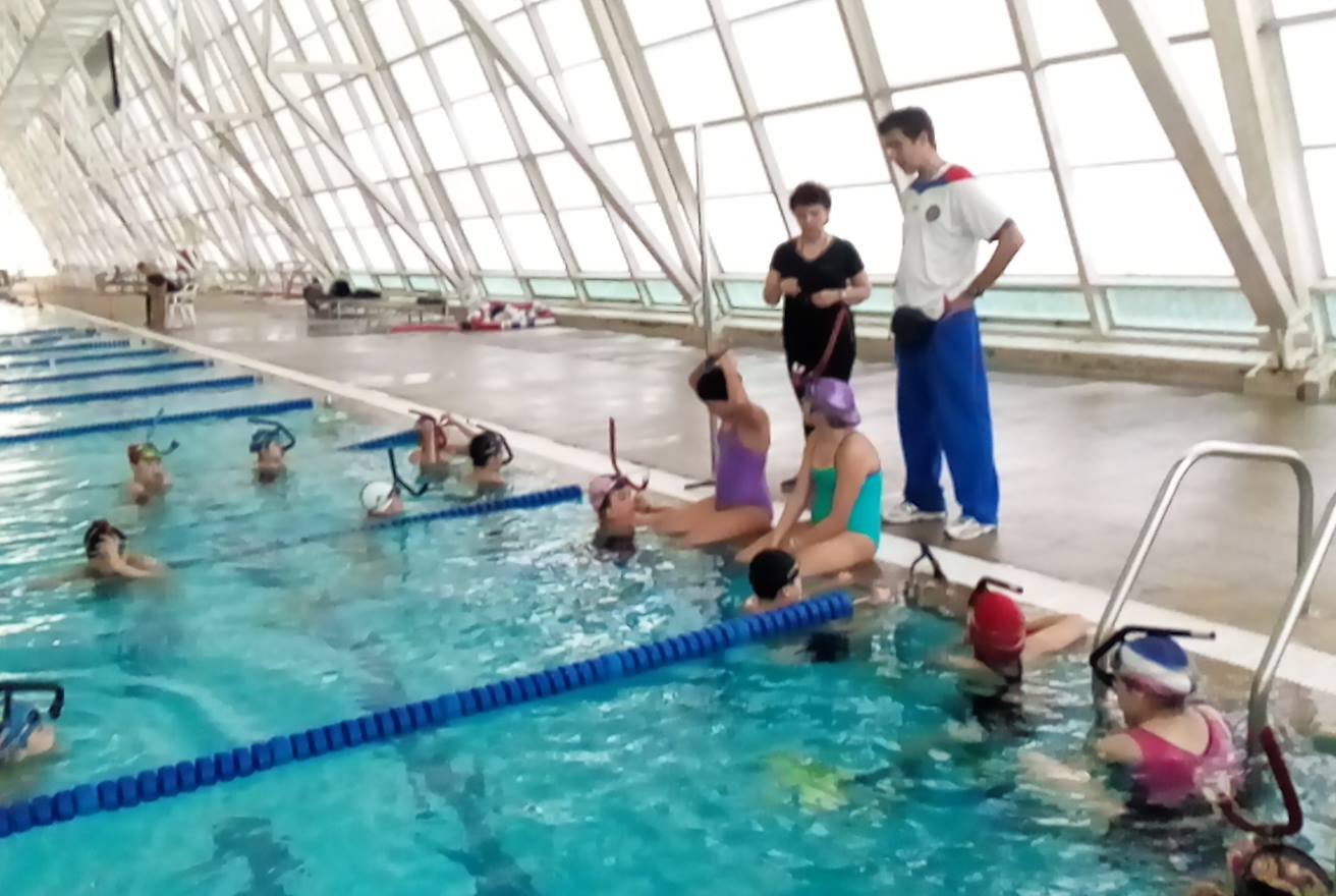 La escuela de Natación con Aletas del Estadio Nacional dirigida por la profesora Catalina Acuña cuenta además con el aval y el apoyo de la Federación Chilena de Actividades Subacuaticas (FEDESUB), la misma funciona los días martes y jueves de 16:00 a 18:00 y los sábados desde las 10:00.