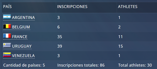 Naciones participantes: Argentina, Bélgica, Francia, Uruguay y Venezuela