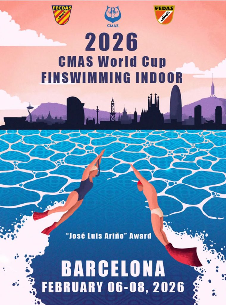 The FEDERACIÓN ESPAÑOLA DE ACTIVIDADES SUBACUÁTICAS (FEDAS) – authorised by CMAS – invites all interested National Federations to participate in the 2026 CMAS World Cup Finswimming Indoor, scheduled to take place on 06 – 08/02/2026 in Barcelona, Spain.